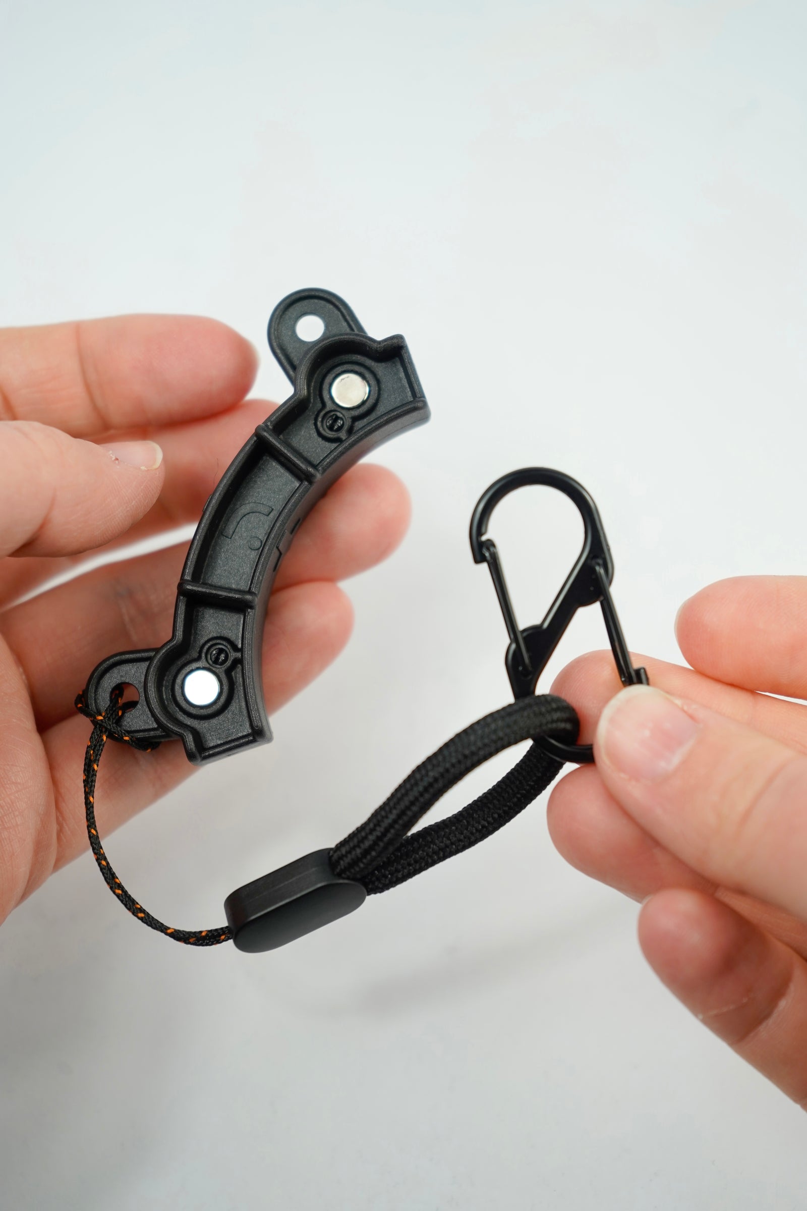 When not using the windshield pods, you can magnetically lock them onto this holder and clip to your bag, harness or cart