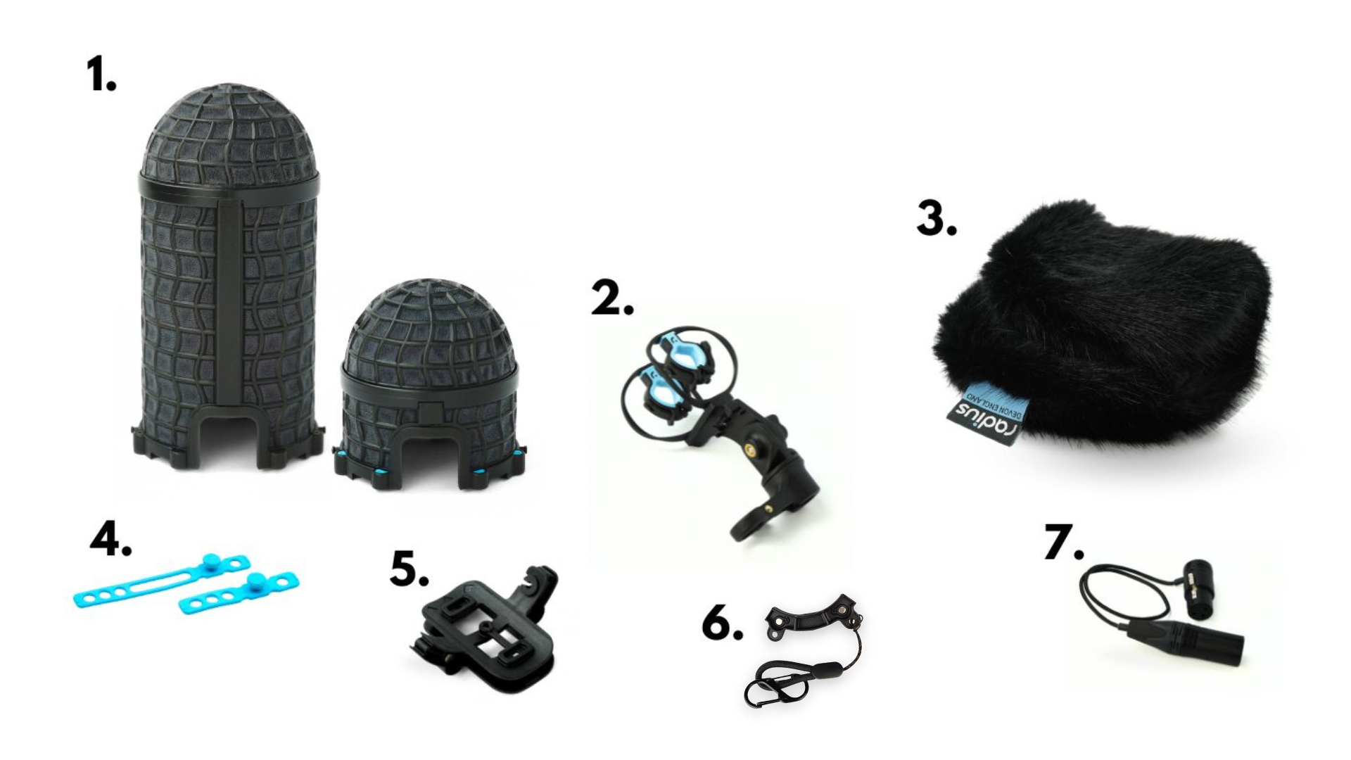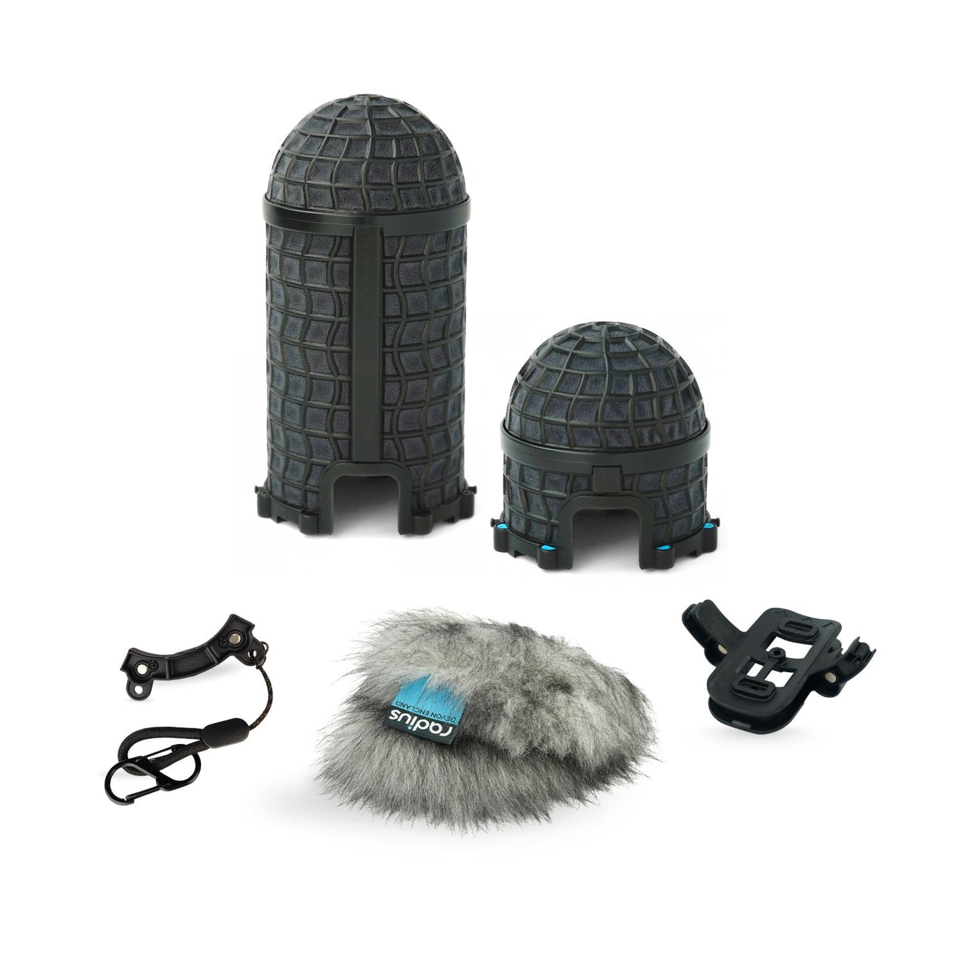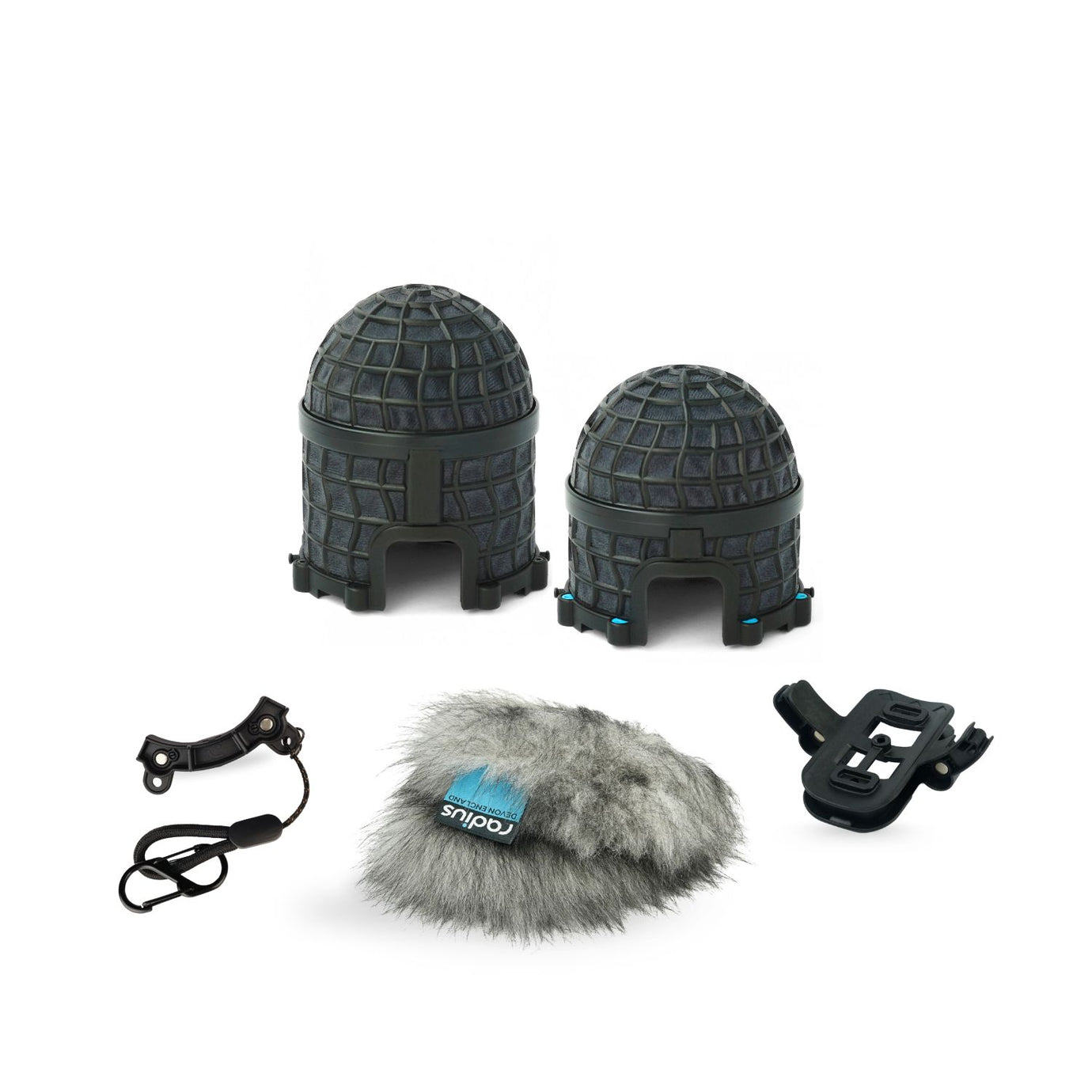 The Add-on kits are suitable for anyone who already has a RAD-1, RAD-2 or RAD-3 Shock Mount. These kits come with the windshield pods shown plus a fur windcover, smiley face RAD mount adaptor and stowage holder with carabiner clip. These are available in versions with a Grey or Black Fur Windcover.
