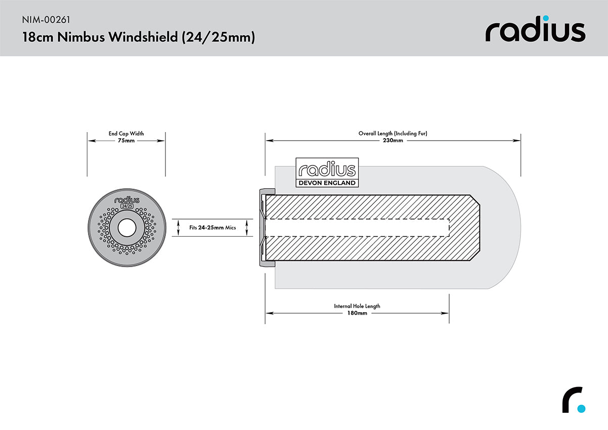 The specially designed rubber end caps are made in two diameters to fit snugly around 19-22mm and 24-25mm microphones, preventing wind from entering behind the capsule. The Nimbus windshields are also the first slip-on style windscreens to incorporate small "pepper pot" hole openings on the rear end caps to provide fuller acoustic transparency for the microphone. This unique feature diminishes polar pattern distortion and adds extra clarity when recording.