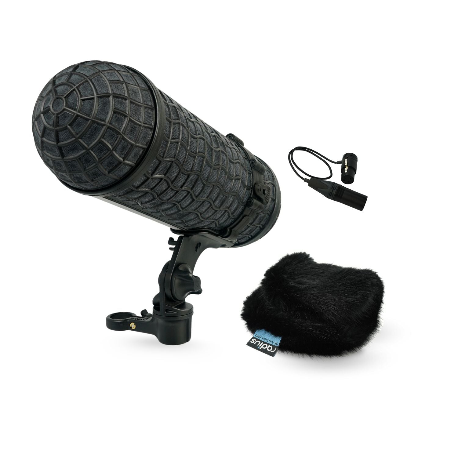 - Included in kit: Mini-ALTO 210 size windshield, RAD-2 Shock Mount with 4 pairs of suspension hoops (extra soft, soft, standard, extra firm), Fur Windcover, Smiley Face Adaptor, Magnetic Windshield Stowage Holder with Carabiner Clip, a pair of RAD Cable Straps and (optional) 3-Pin XLR cable.