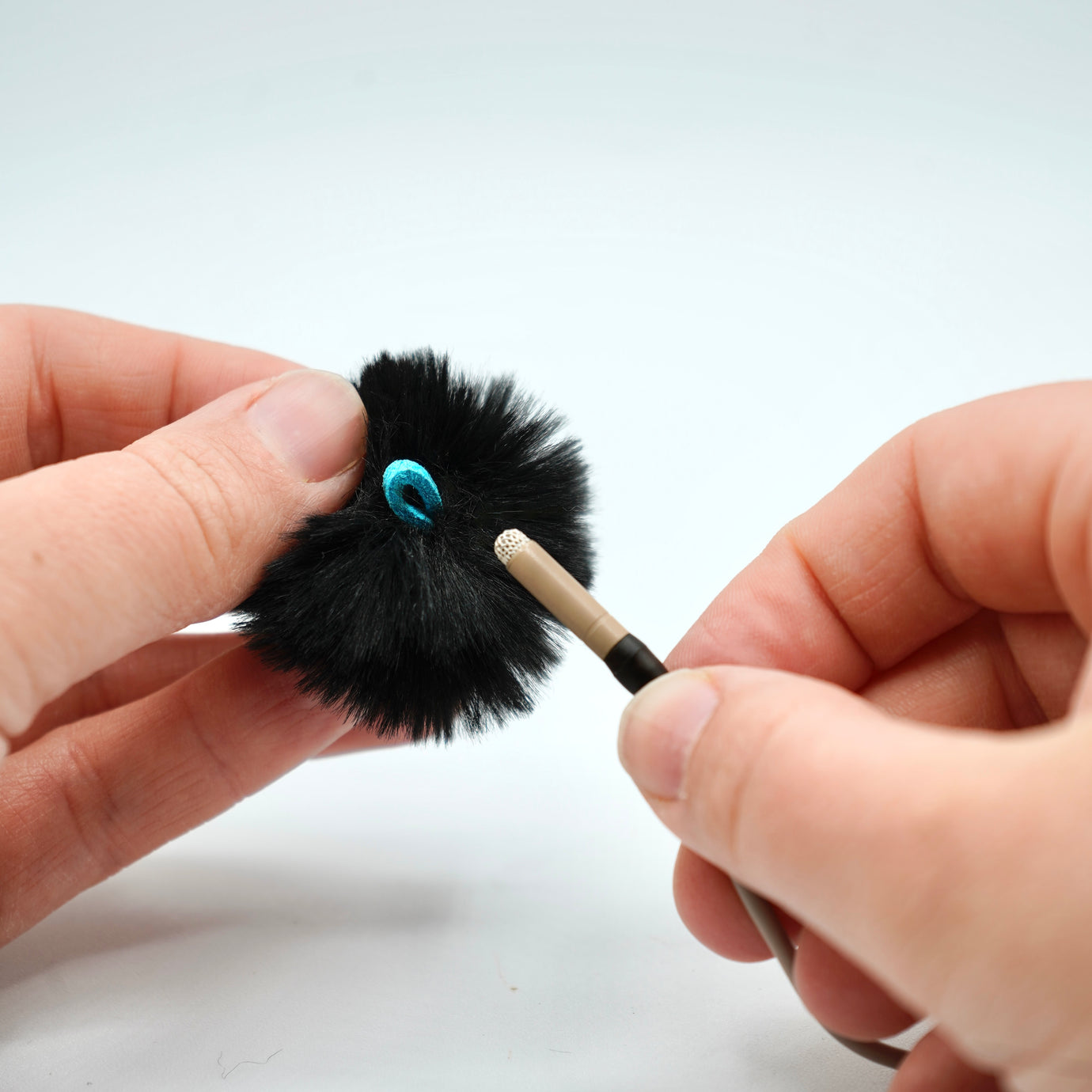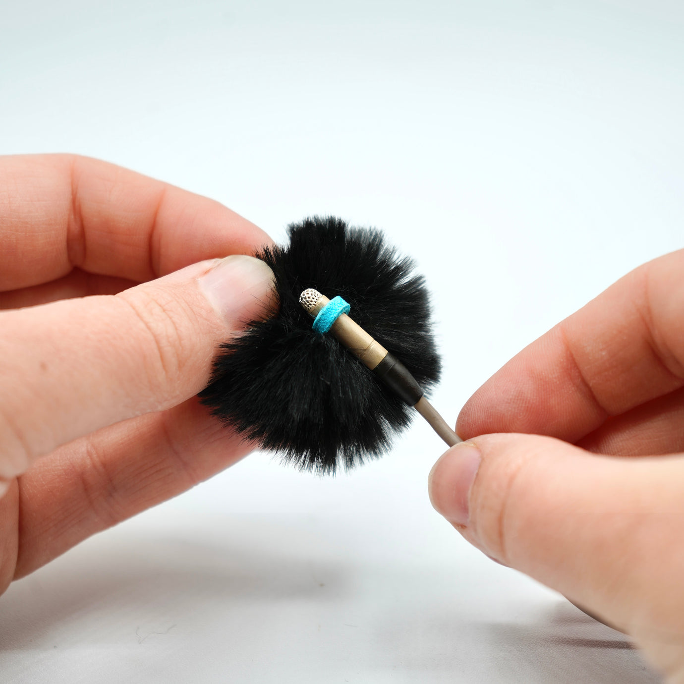 Puffer Urchins provide great protection for outdoor ENG interviews or other situations where the lav mics are exposed to more wind. These also have a unique blue "safety strap" which holds the fur firmly in place.