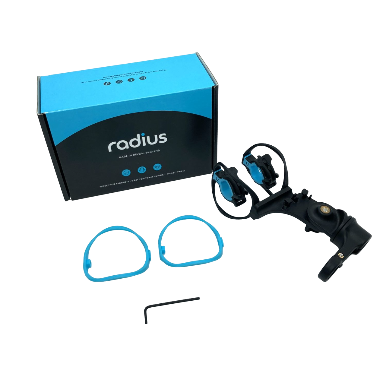 - 2 pairs of interchangeable RAD-1 hoops are included - standard firmness (black) and soft firmness (light blue)