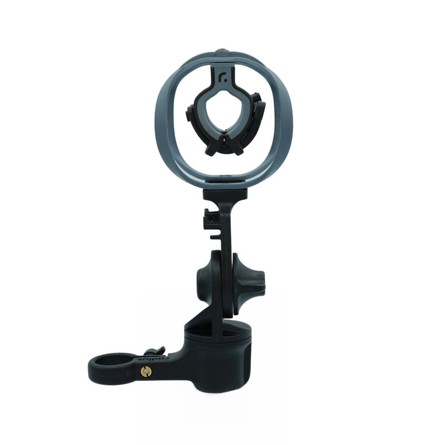 The mount has soft-coated universal mic clips to fit any mic 19-25mm in diameter. Each mount includes a pair of standard firmness hoops (black), a pair of softer hoops (dark grey) and a pair of extra firm hoops (dark blue). The RAD-2 hoops are slightly thicker than RAD-1 hoops and have an extra 3mm of bracing on top to hold the extra weight of front-heavy microphones. All of the components are produced using virtually indestructible thermoplastic elastomers from high-precision injection moulding in an ISO-9000 certified factory (no 3D printing here).